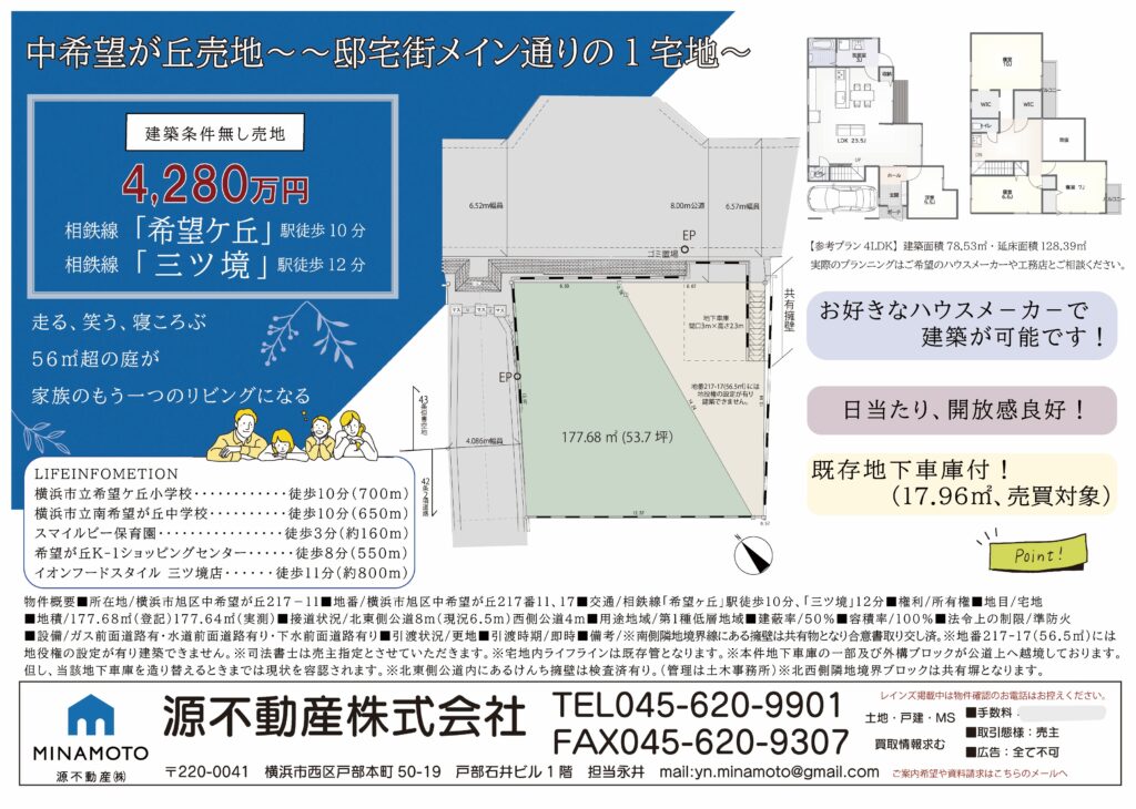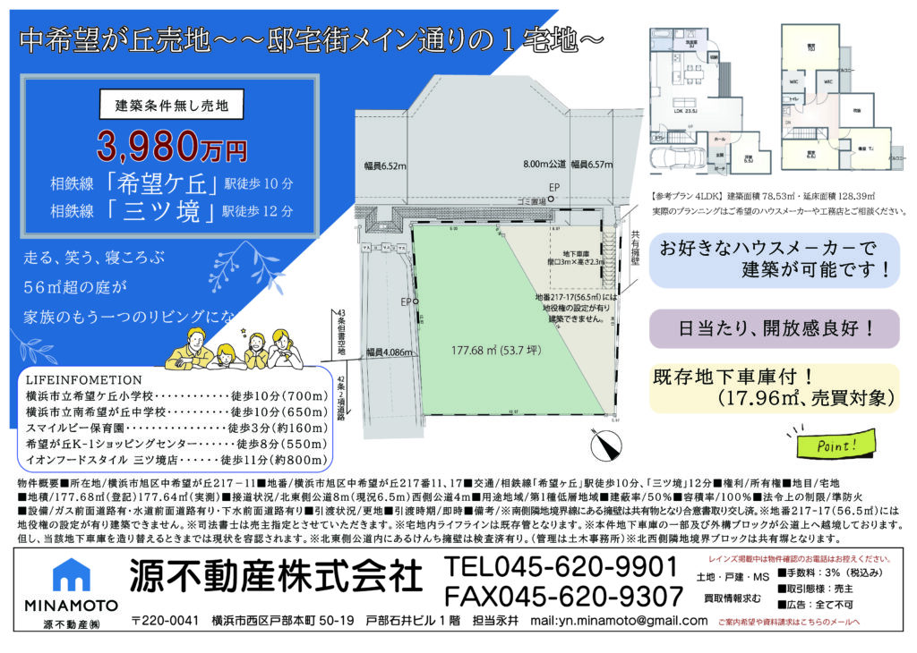 ☆☆相鉄線「希望ヶ丘」駅徒歩10分!「三ツ境」駅も12分! 邸宅街メイン通りの角地!☆☆